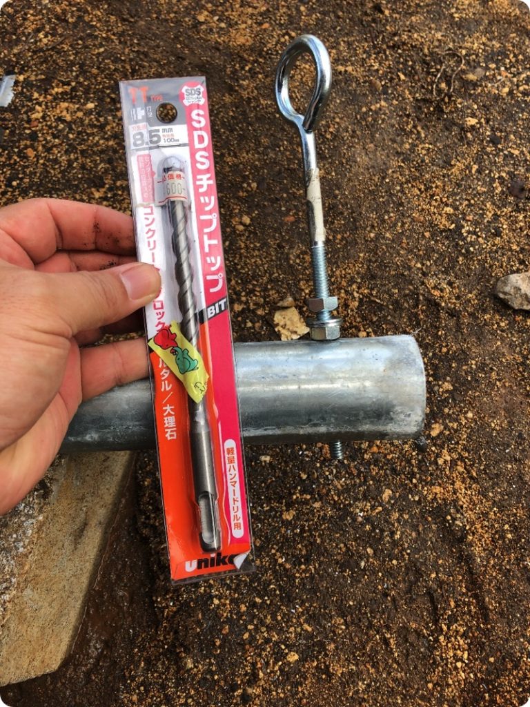 持っていったドリルの径が足りず、8,5mmのドリルを木田商会で購入し、なんとか震動ドリルであけることができました。