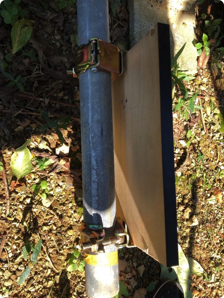 電力量計の取り付け板は、タルキクランプをつけて、単管に取り付けられることを確認。