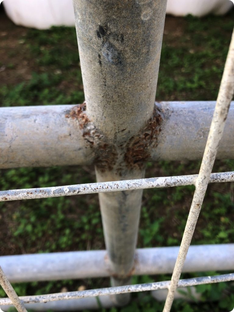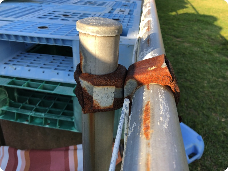 直交クランプもこんなにさびてしまっている。ここのキャップはなぜかさびていない。なんでだろう。