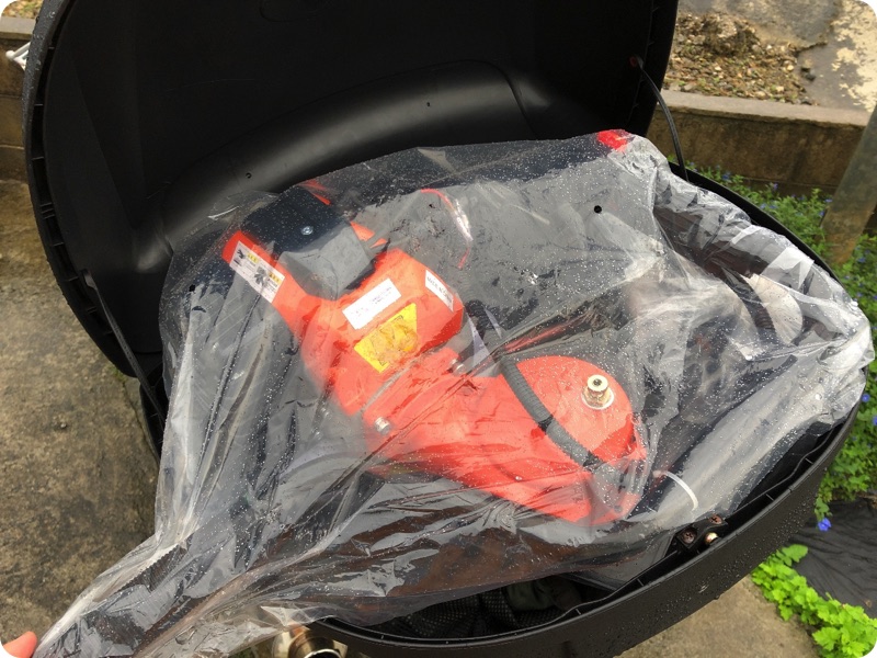 穴掘り機はなんとかバイクの荷台に乗った。これが10kg近くと重い。