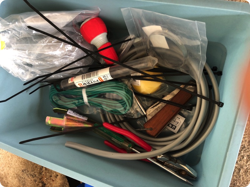 持っていく荷物の確認。ドリルは使わないのになぜか歯がある。