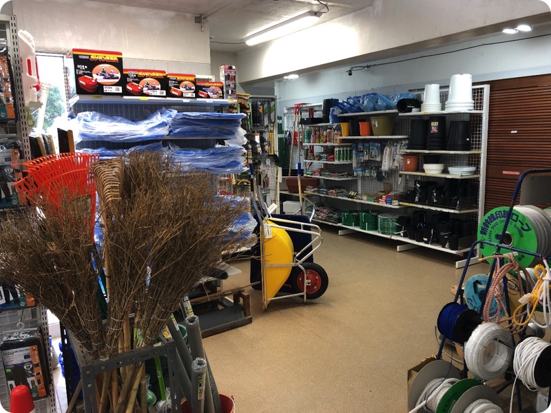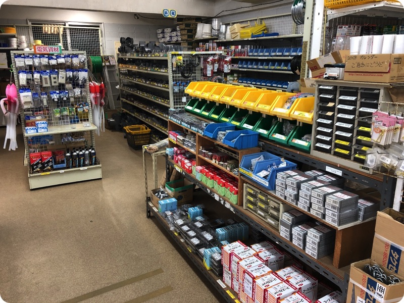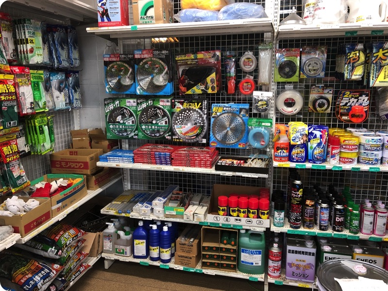 ガソリンスタンド店内に入ったら、ミニメイクマン状態。工具、ブルーシードなどけっこう工事で使うものがなんでもそろっていたのでびっくり。
