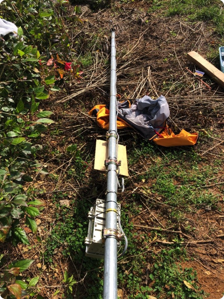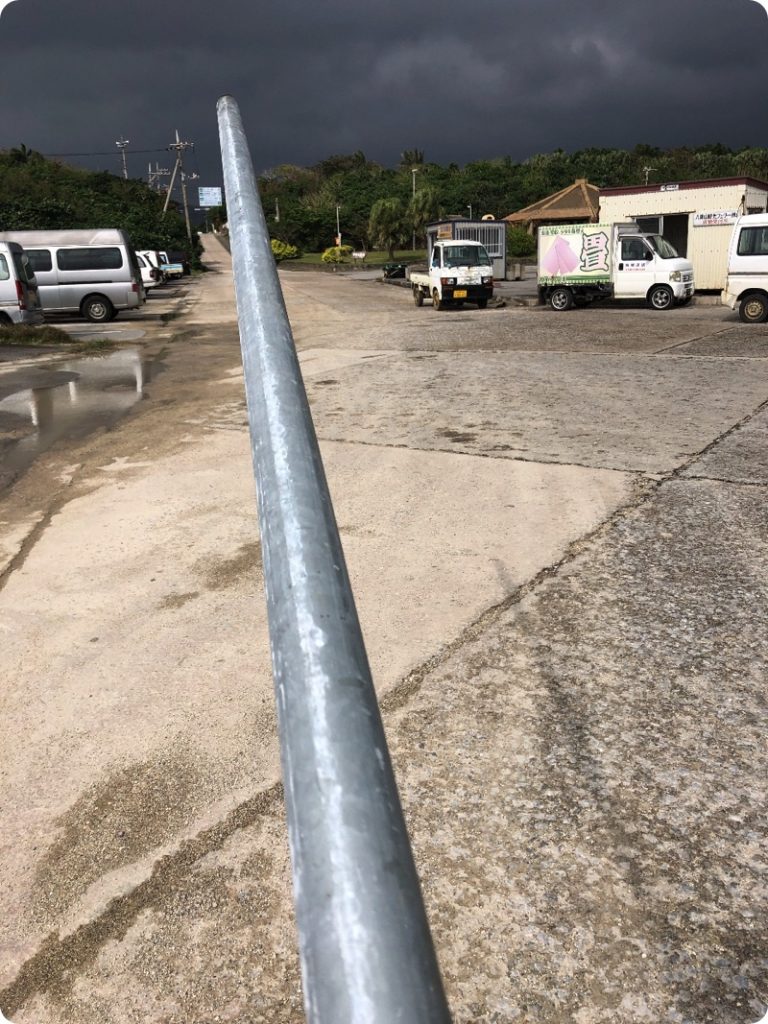 11:36 えっちらおっちらと6mの単管をかついで運ぶ。17kg近くあるようでけっこう重い。