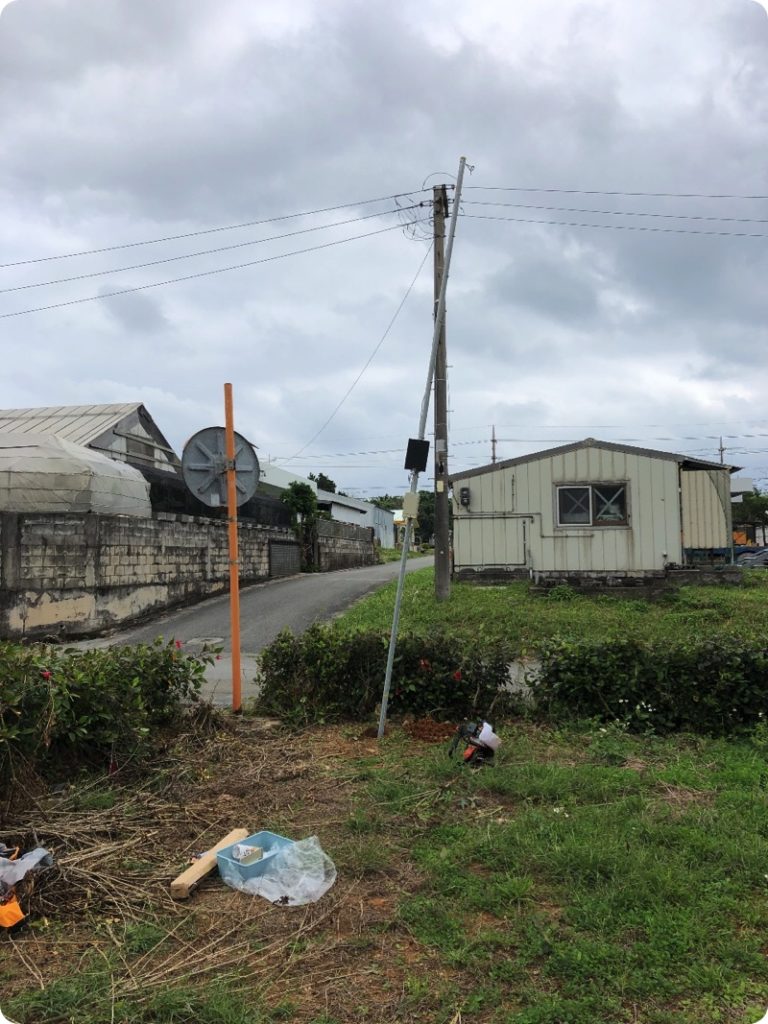 10:40、大原(仲間港)について、まずは荷物を土地に運ぶ。電柱番号を確認。これは図面を提出する時に大切。