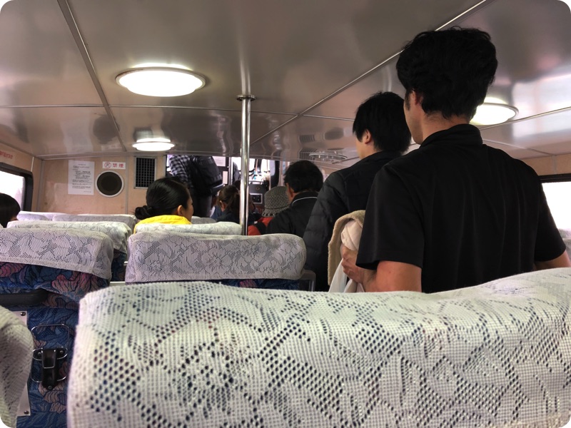途中、新城島に船が寄り、多くの人が降りた。