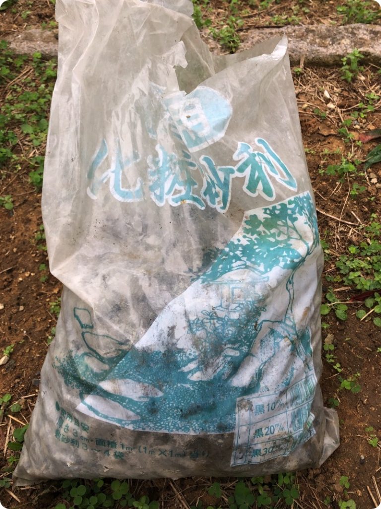 「化粧砂利」ということで見栄えのいい石のようだ。ただ、自分は使っていないので、今日の単管を土に埋めたときに、土との隙間を埋めるために持っていった。これがかなり重い。