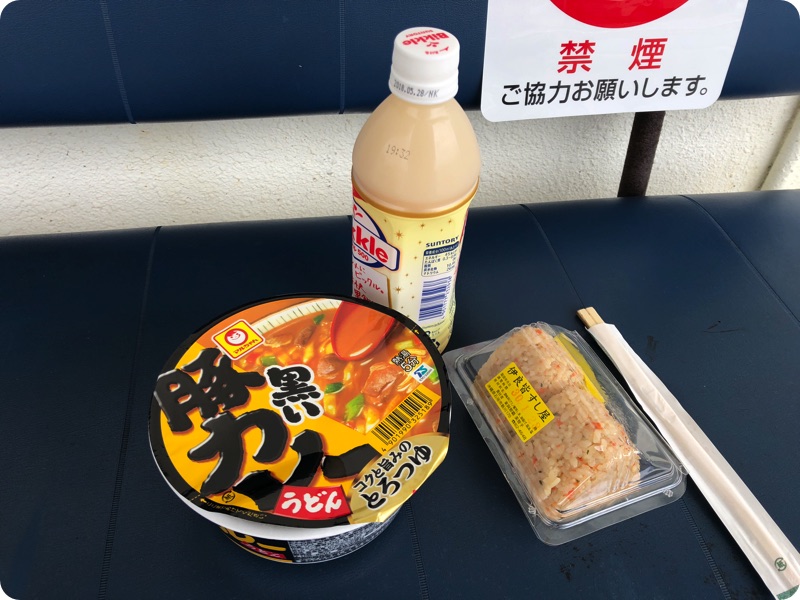 ちょうど食べ終わったら雨もやみ、「よし、もうひとふんばりがんばるか」とやる気を出す。