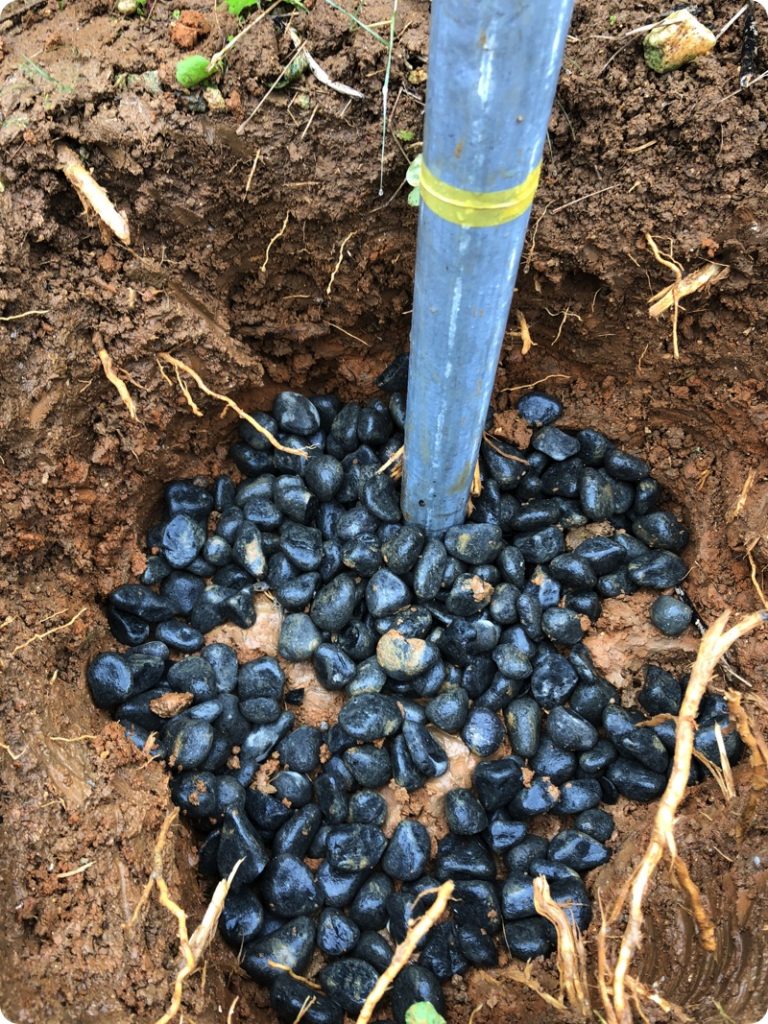化粧砂利で柱の周りにうめこむ。