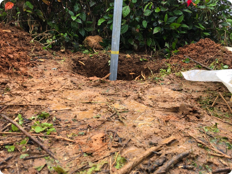 ドリルの長さが70cmくらいしかないので本体のスペースも掘り、なんとか1m掘れるように頑張る。