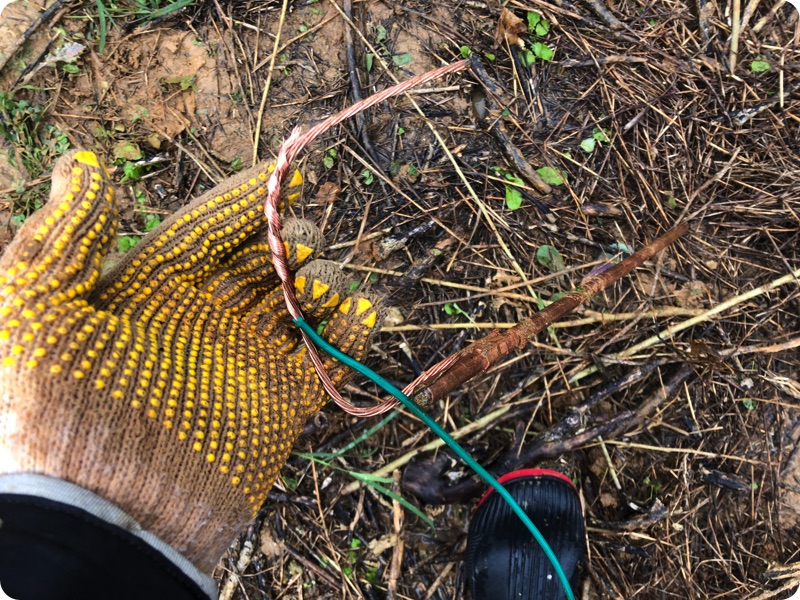 ちょうど古い鉄筋があったのでそれでなんとか穴をほり、かなづちで埋め込む。