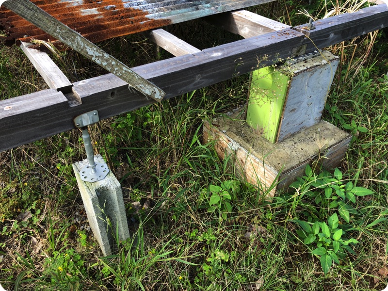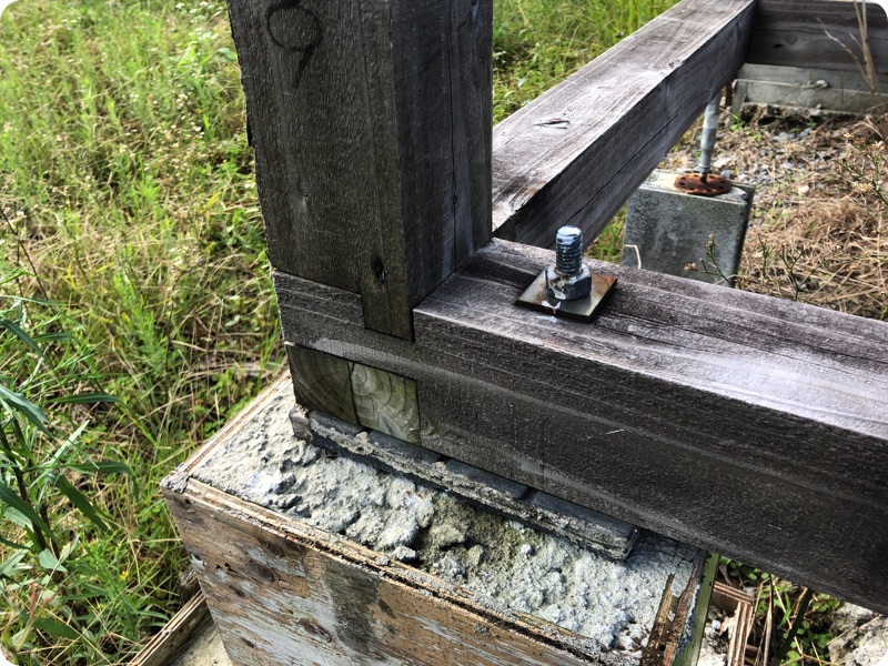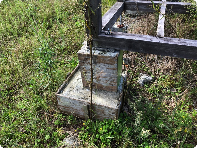 木にこんな金属製のカバーをかぶせている。これなら木は腐らないね。検索してもわからないので作ったのかな?