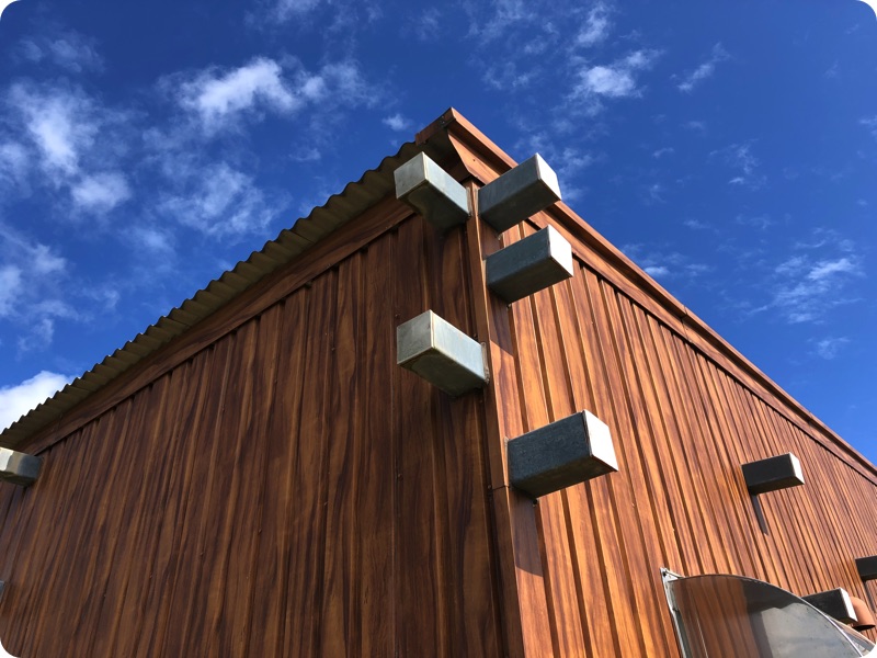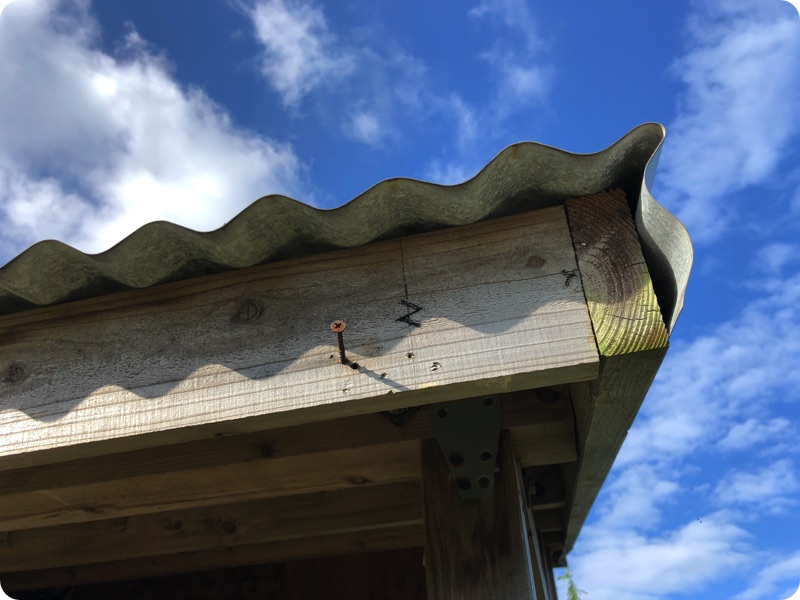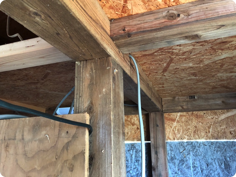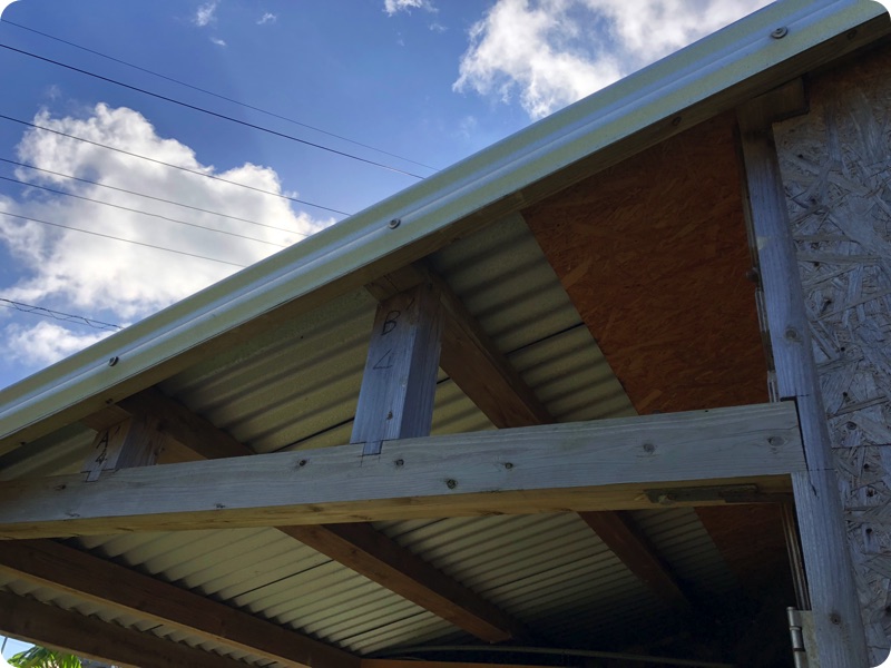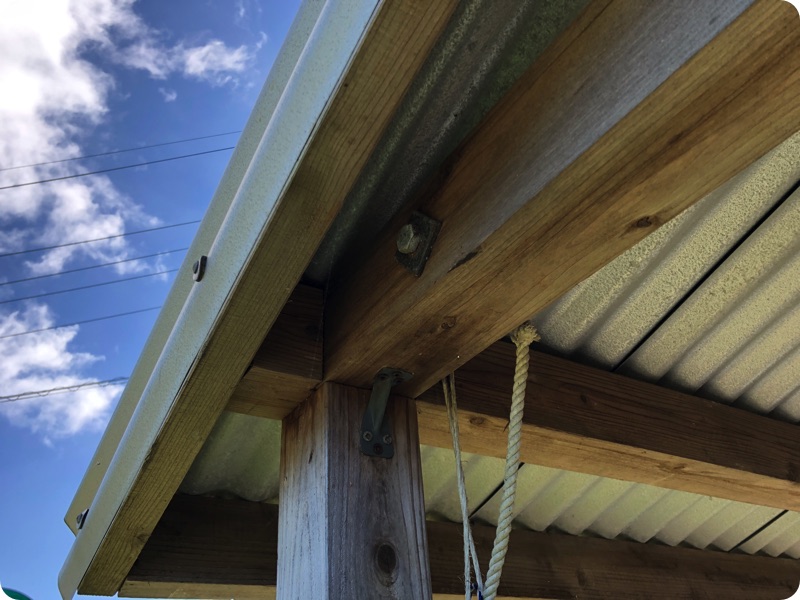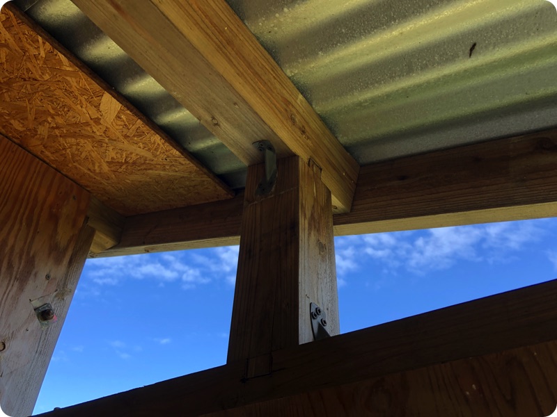 屋上を支える柱が屋上と水平になるように斜めに支えている